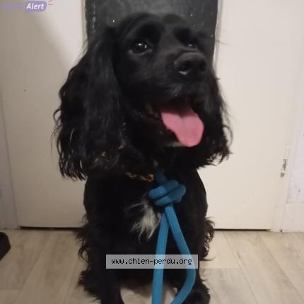 J'ai trouvé ce jeune chien noir ( style cocker ) vers le lycée René Cassin à Mâcon. Il a une petite tâche blanche sous le cou.